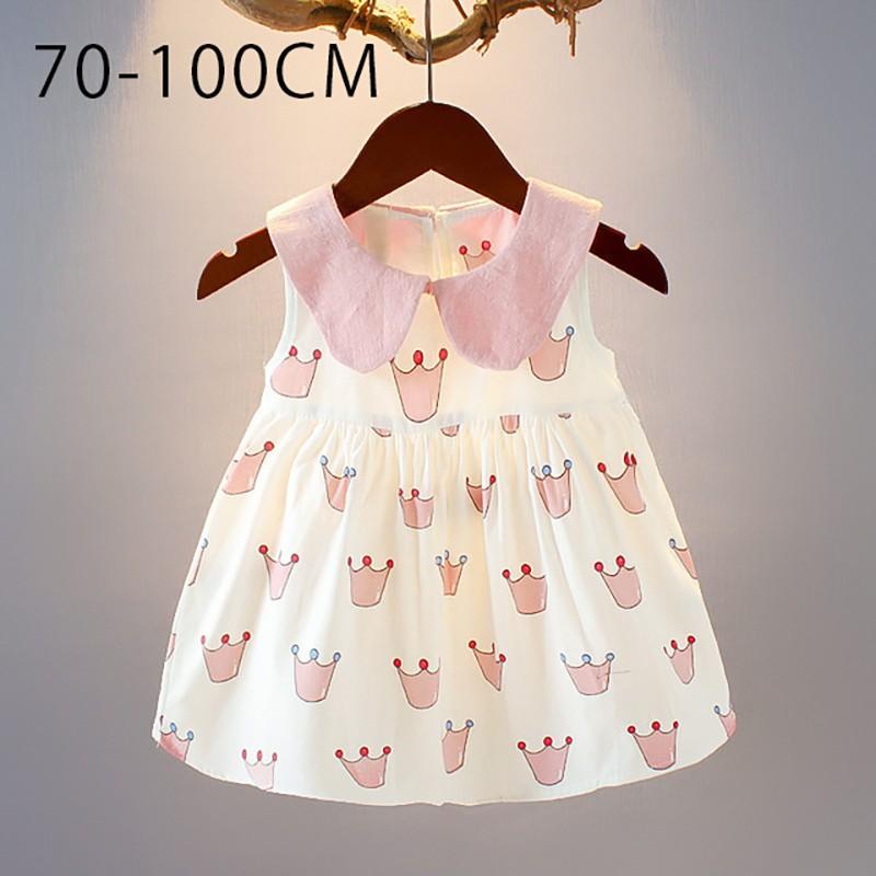 ベビー服 ベビーウェア ワンピース ノースリーブ 襟付き 王冠 イラスト プリント 夏 かわいい 女の子 ピンク 70cm 80cm 90cm 100 プラスナオ Paypayモール店 通販 Paypayモール